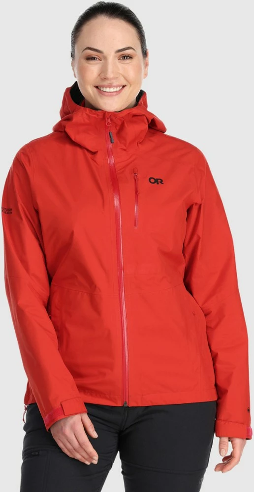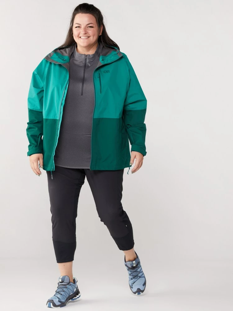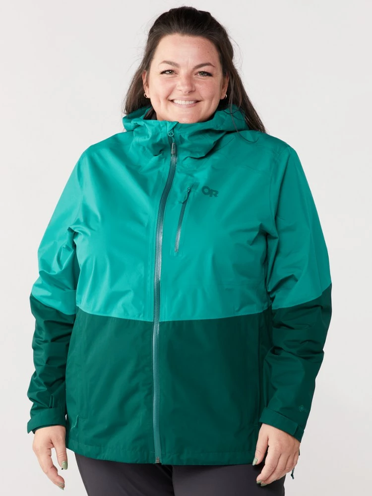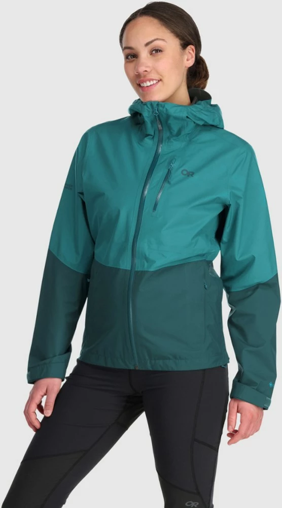 Updated with a longer length and modern design features but still just as ready for the rain, this women’s Outdoor Research Aspire II GORE-TEX jacket is a worthy companion for wet weather.