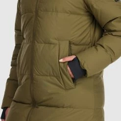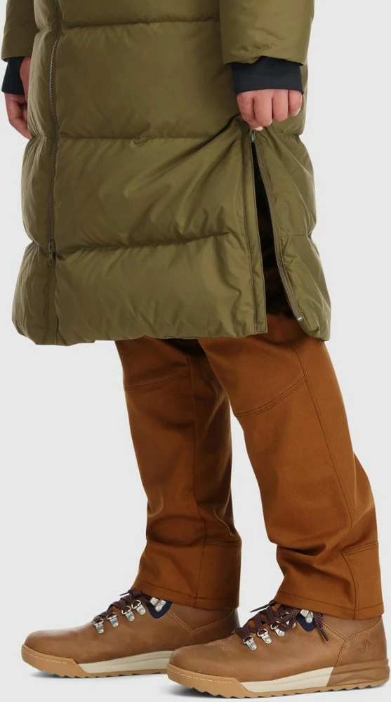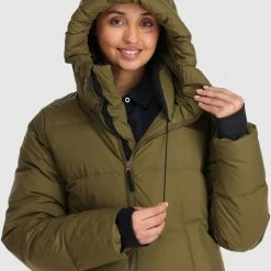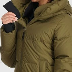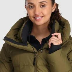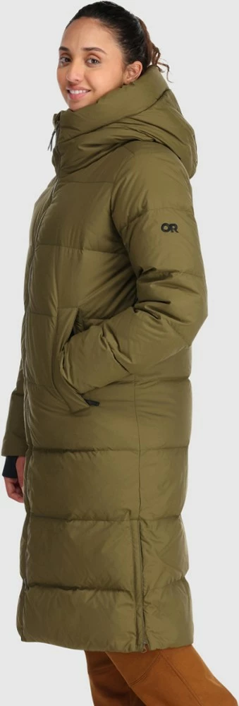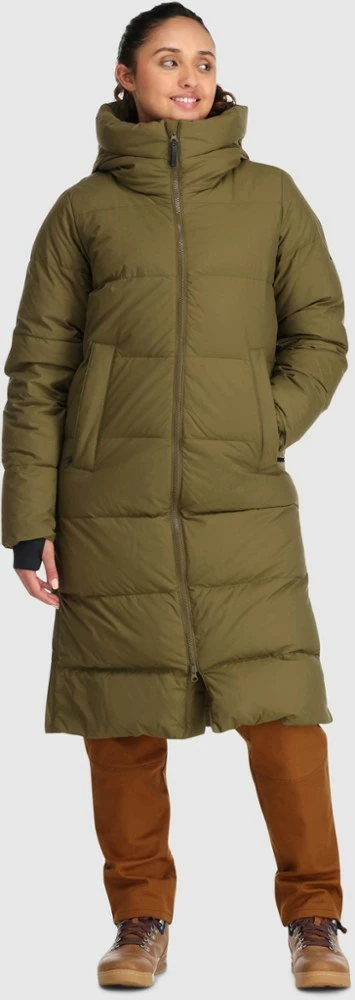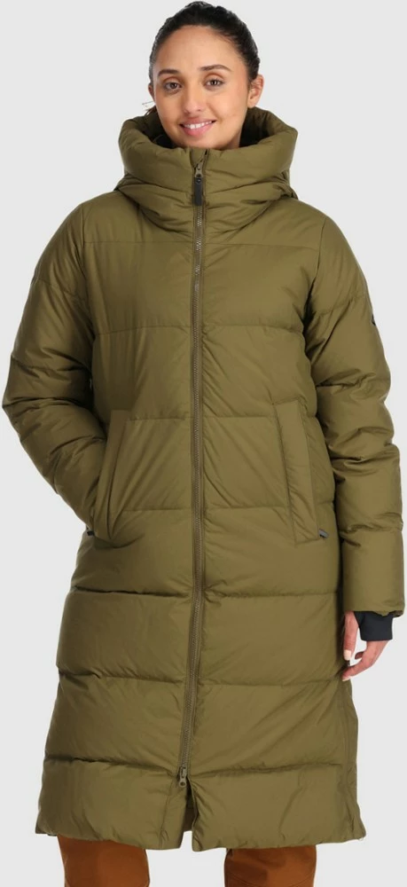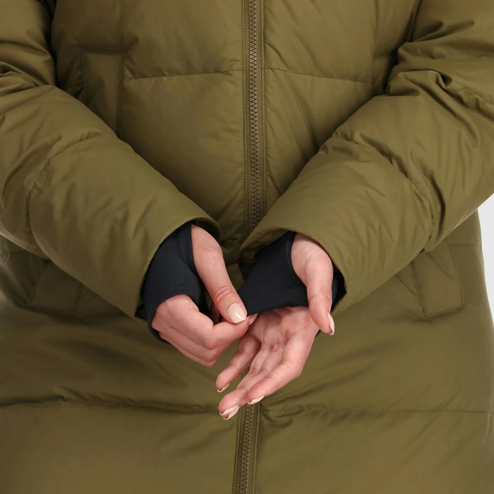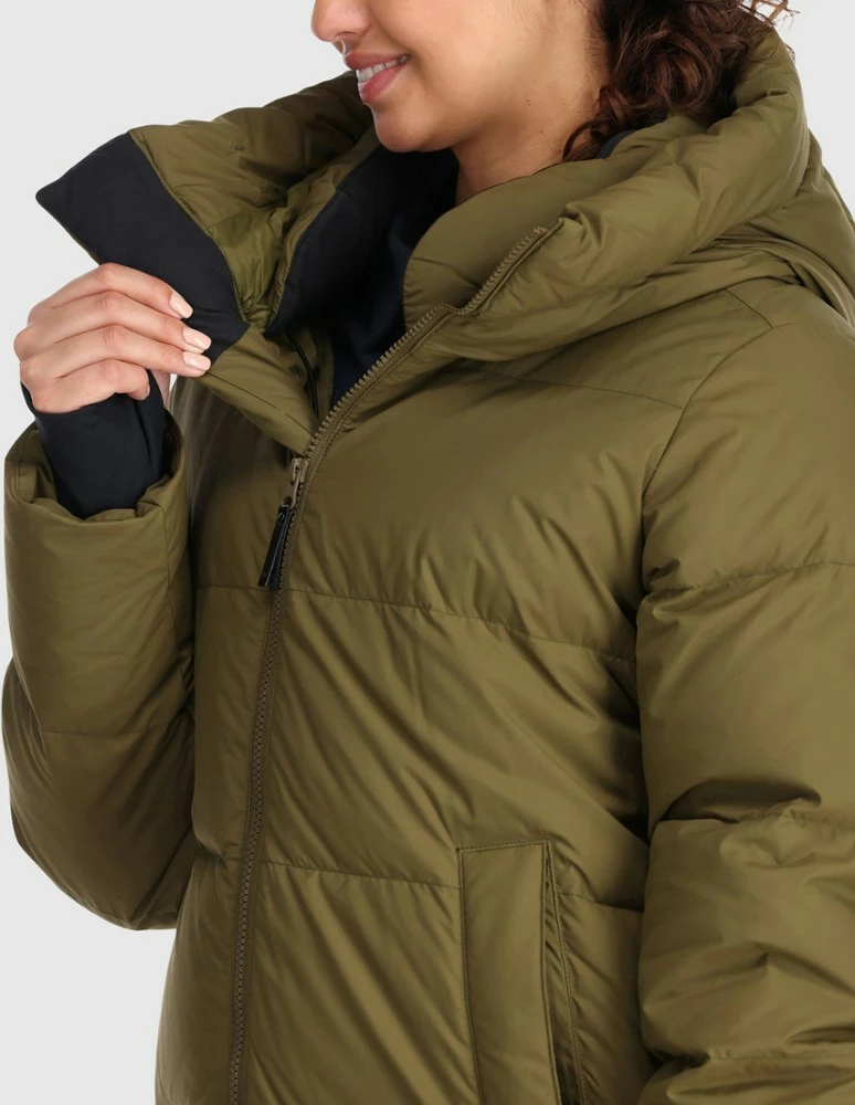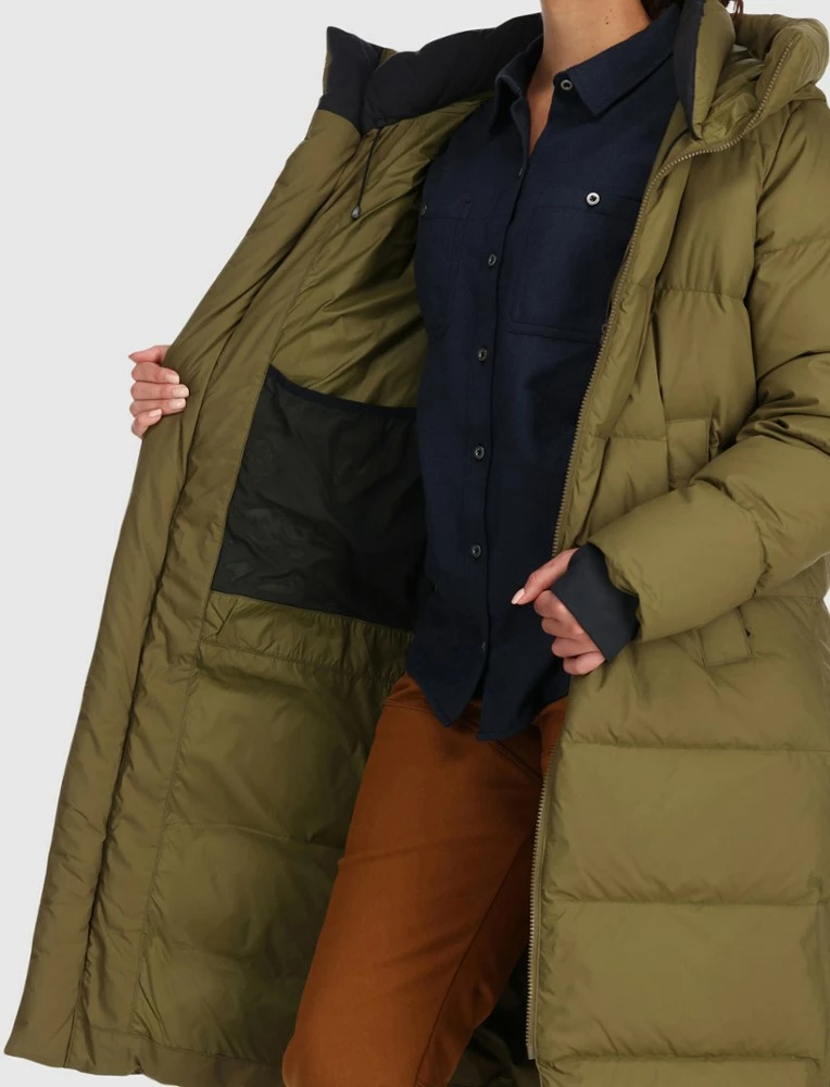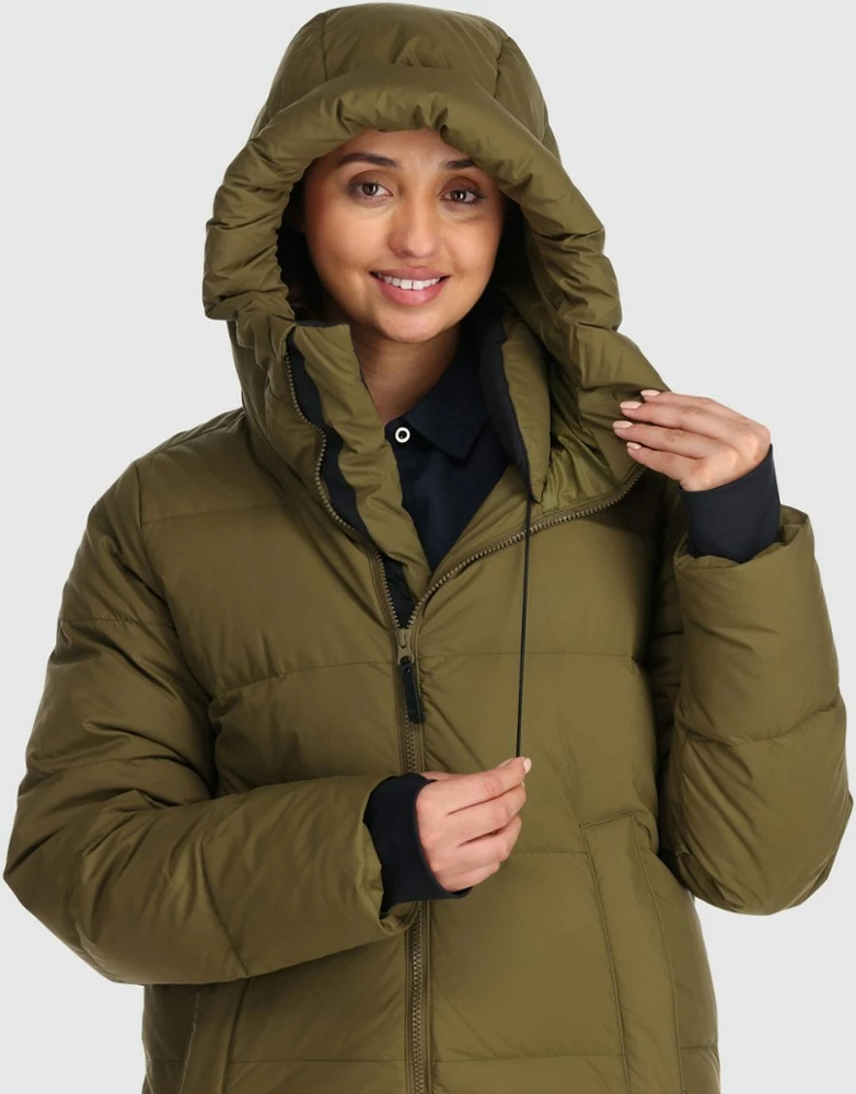 Temperatures plummeting outside? Try this coat. Dropping in below the knee and zipping up above the nose, the women’s Outdoor Reseach Coze down parka provides serious coziness for cold days.