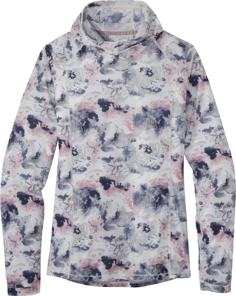 Ultralight and wicking for high-exertion activities, the women’s Outdoor Research Echo Printed hoodie is made of soft and stretchy mesh fabric that manages moisture to help keep you cool and dry.