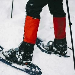 - Hook-and-loop front openings allow quick on/off; upper edge cinch straps with hook-and-loop closure ensure gaiters stay up, even in deep snow