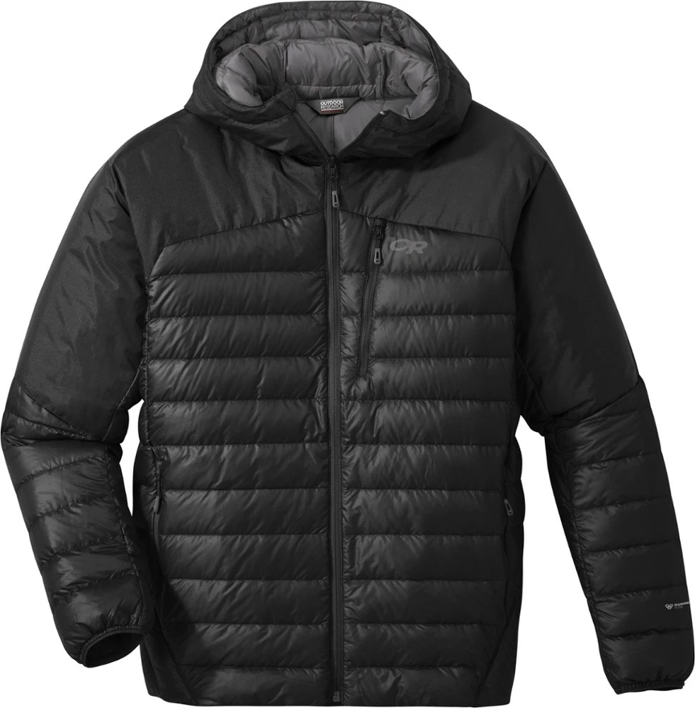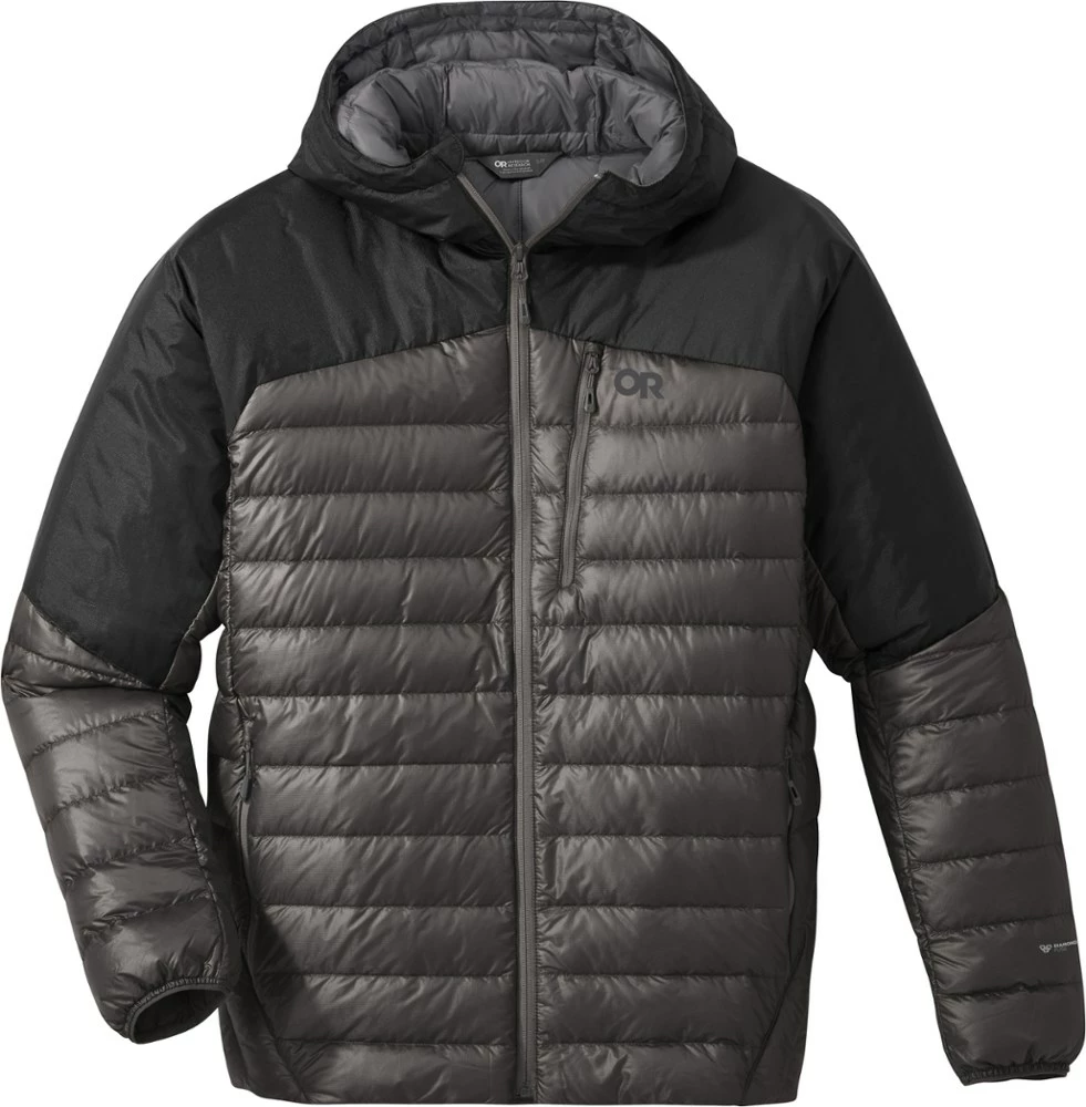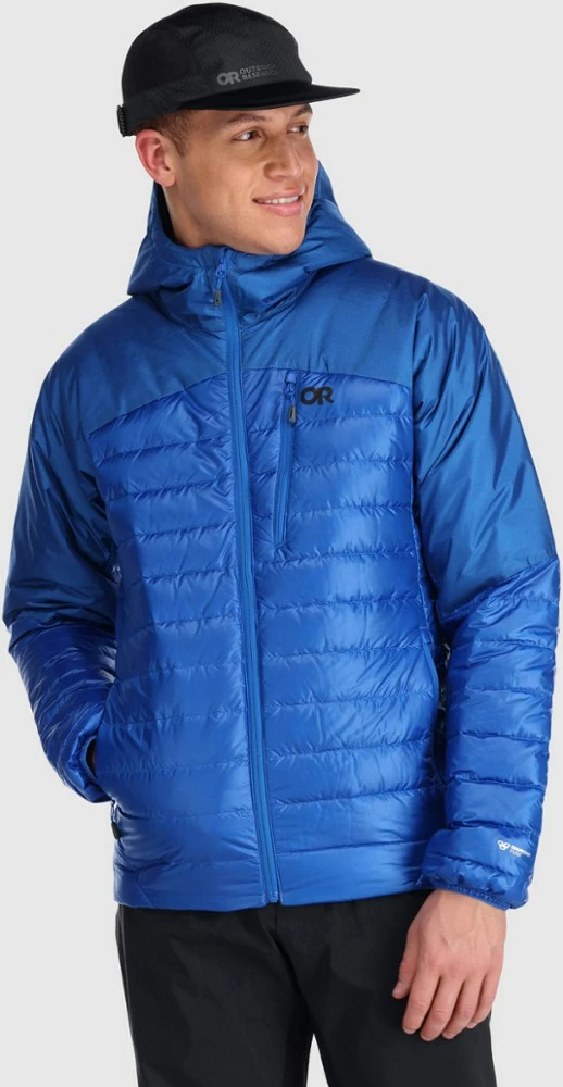 Take durable, lightweight warmth to an entirely new level with the men’s Outdoor Research Helium Down hoodie. Its secret sauce of Pertex® Quantum with Diamond Fuse Technology is ready for rugged use.