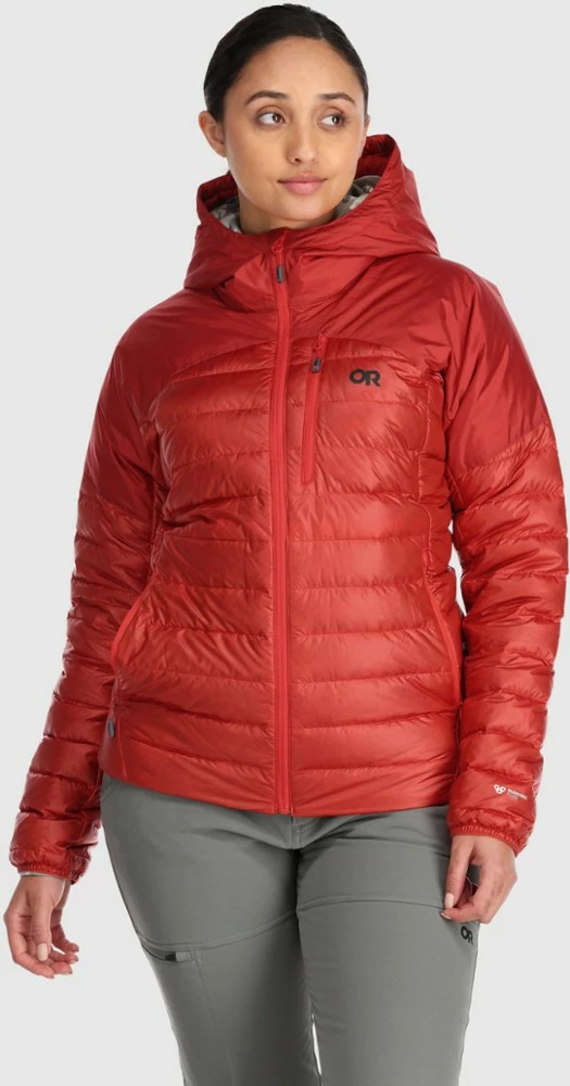 Take durable, lightweight warmth to an entirely new level with the women’s Outdoor Research Helium Down hoodie. Its secret sauce —Pertex® Quantum with Diamond Fuse Technology—is ready for rugged use.