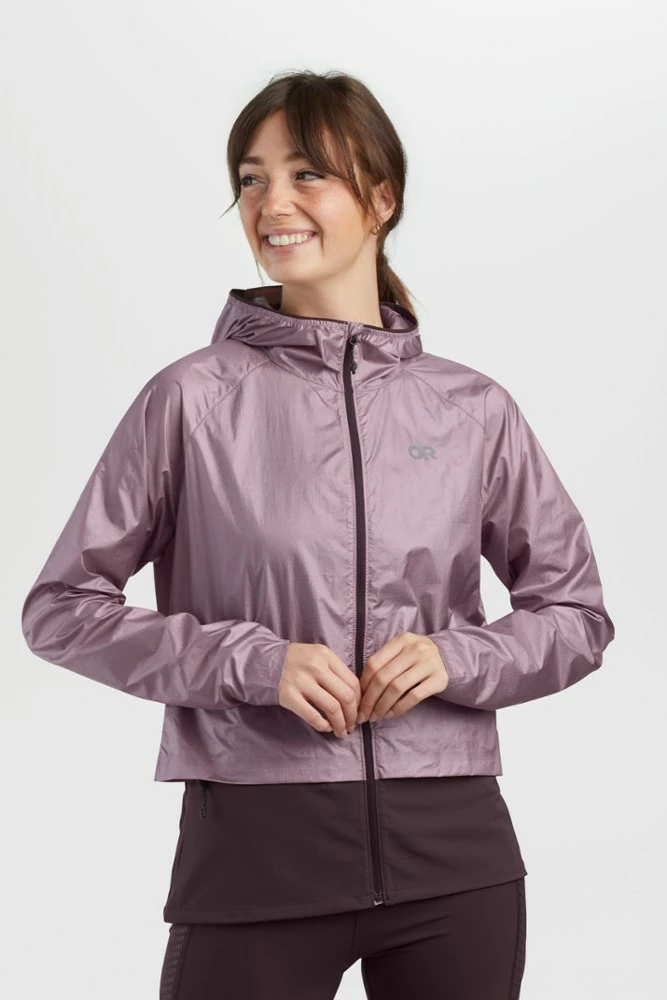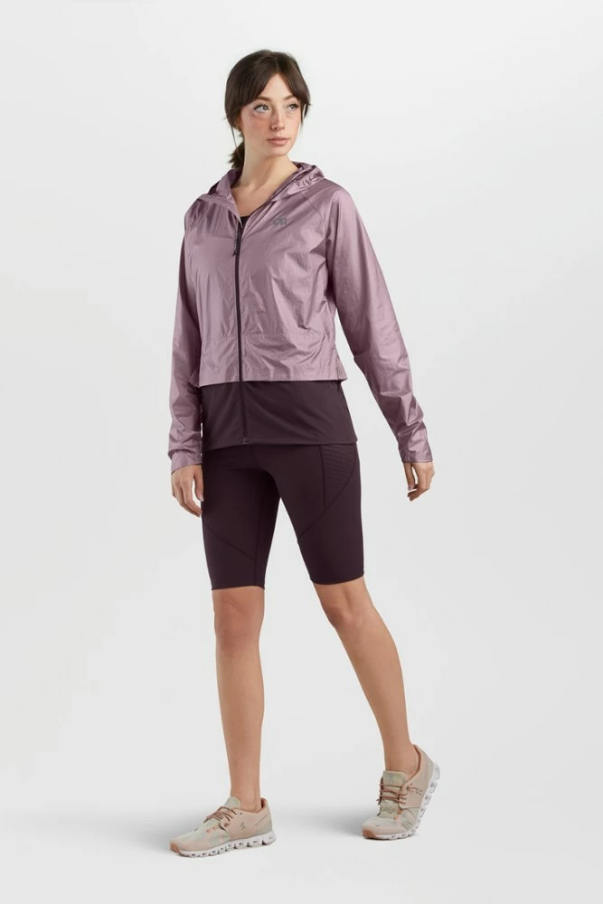 Take on gusty runs, climbs, bike rides and other headwind-prone pursuits. The women’s Outdoor Research Helium Wind hoodie provides weather resistance alongside amazing breathability.