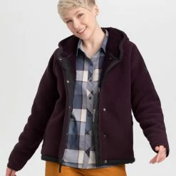 Named to match the Juneau beanie, this women’s Outdoor Research Juneau Fleece hoodie is an ultra-cozy, densely warm layer perfect for chilly weekend walks or fall camping trips.