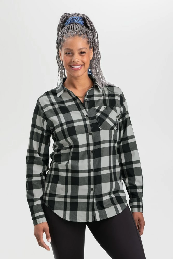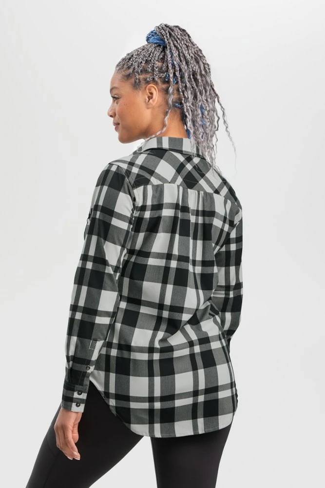 Loaded with the technical features needed for light hiking, the Outdoor Research Kulshan flannel tunic is made with stretchy, sun-protective Sorona® fabric with great recovery and wrinkle resistance.