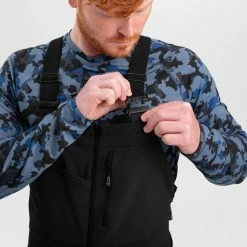 - Durable shell pants feature a stretch-woven shoft-shell bib and waterproof legs and seat