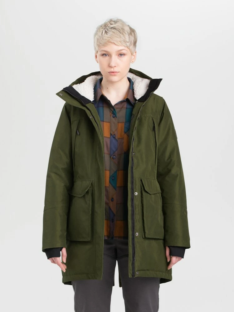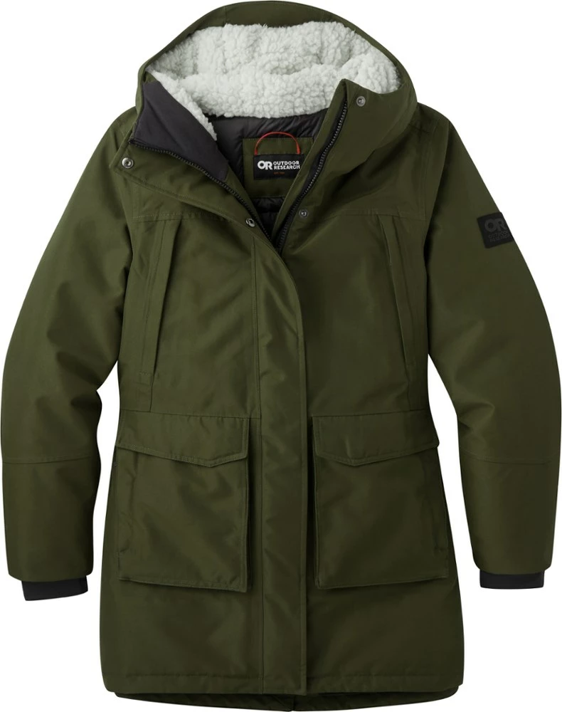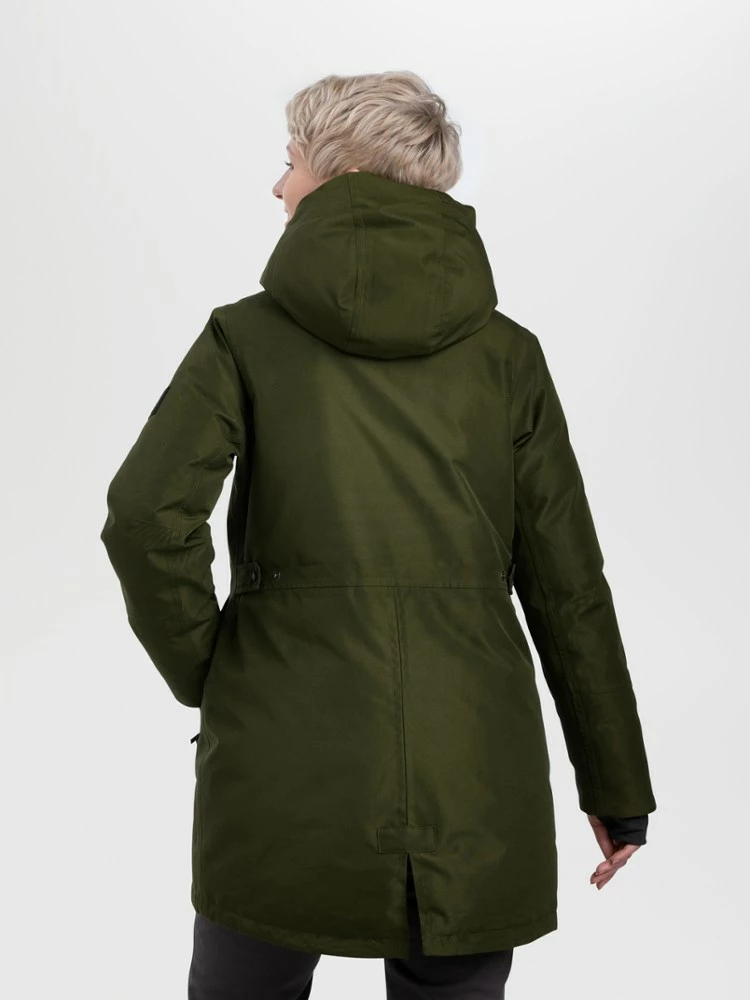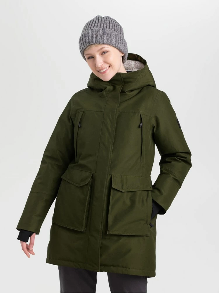 Waterproof, windproof and insulated with tons of 700+-fill-power down, this women’s Outdoor Research Stormcraft Down parka is built for everyday excursions in cold, stormy northern winters.