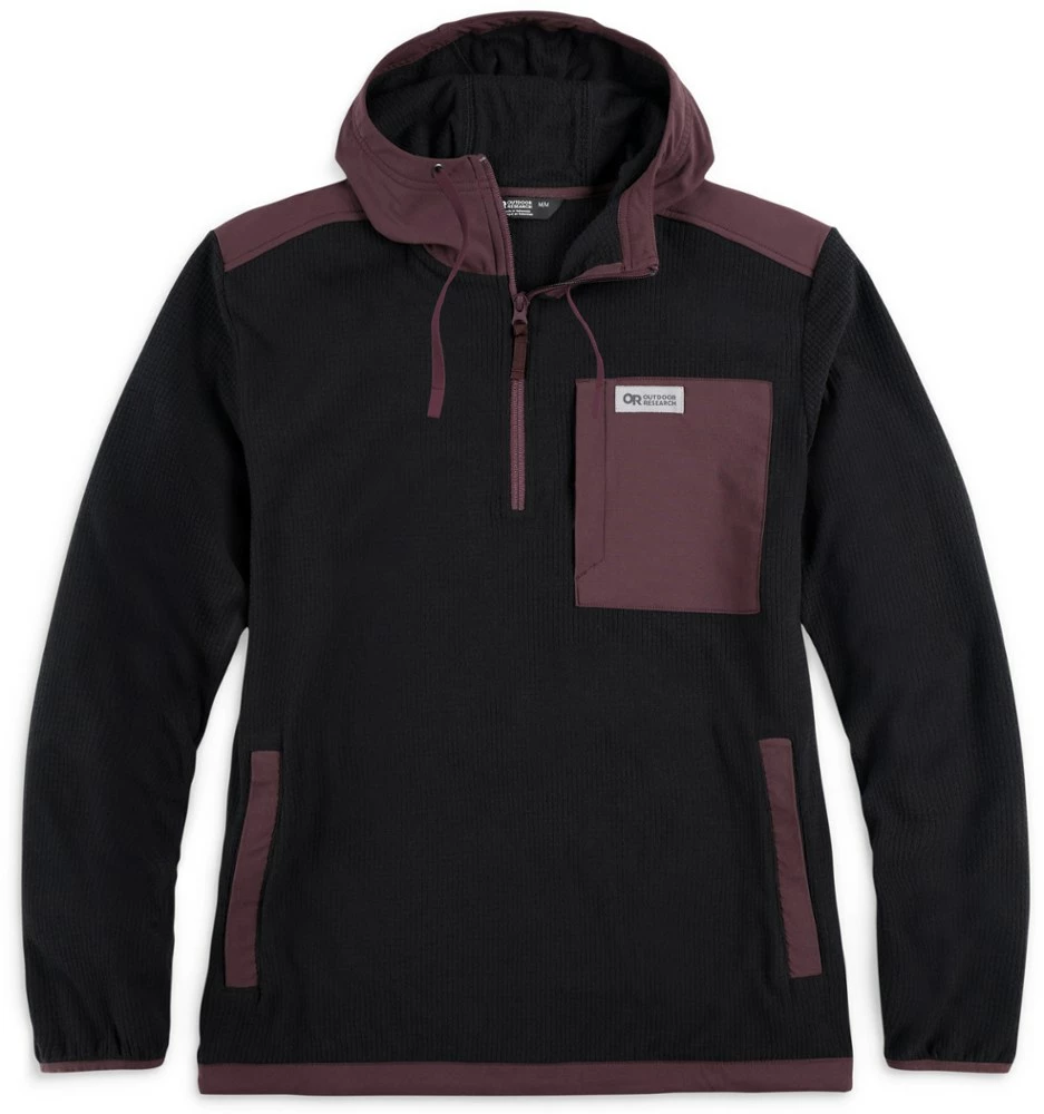 Keep cozy at home, on the trails or around the campfire with the men’s Outdoor Research Trail Mix fleece pullover hoodie. This mid-layer grid fleece helps keep you warm and dry on your hike.