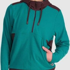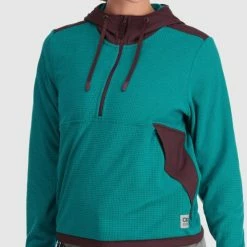Keep cozy at home, on the trails or around the campfire with the women’s Outdoor Research Trail Mix pullover hoodie. This mid-layer grid fleece helps keep you warm and dry on your hike.
