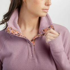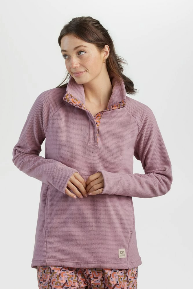 When you’re hiking, climbing, road tripping or just working from home, pull on the women’s Outdoor Research Trail Mix Snap pullover. Its thermoregulating fleece keeps you cool, dry and comfy.