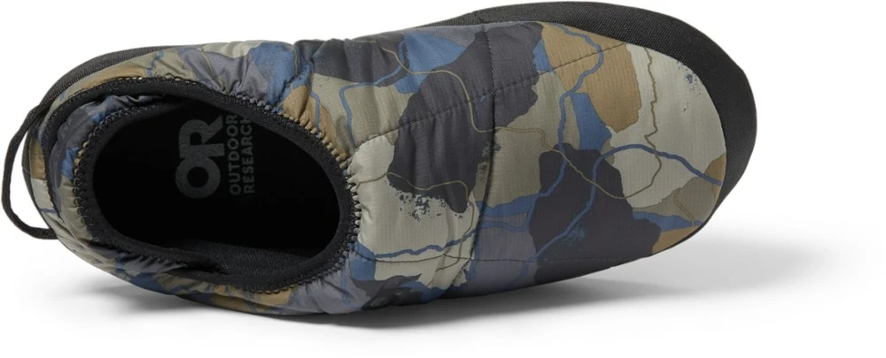 Keep your toes toasty warm around camp with the men’s Outdoor Research Tundra Slip-On Aerogel booties. Made with NASA-approved insulation, these booties are ready for campfire stories and s’mores.