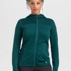 The perfect layering fleece, the women’s Outdoor Research Vigor full-zip fleece hoodie is lightweight, warm and wicking—everything you want for those cool morning hikes in the early spring and fall.