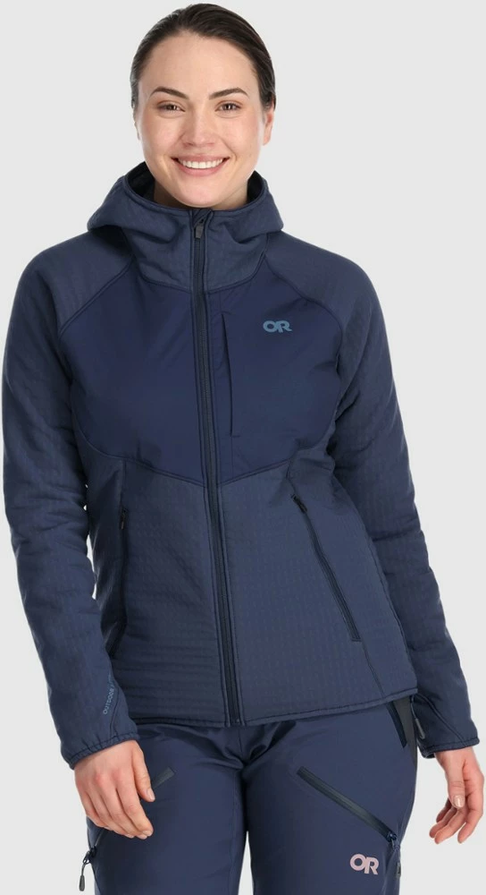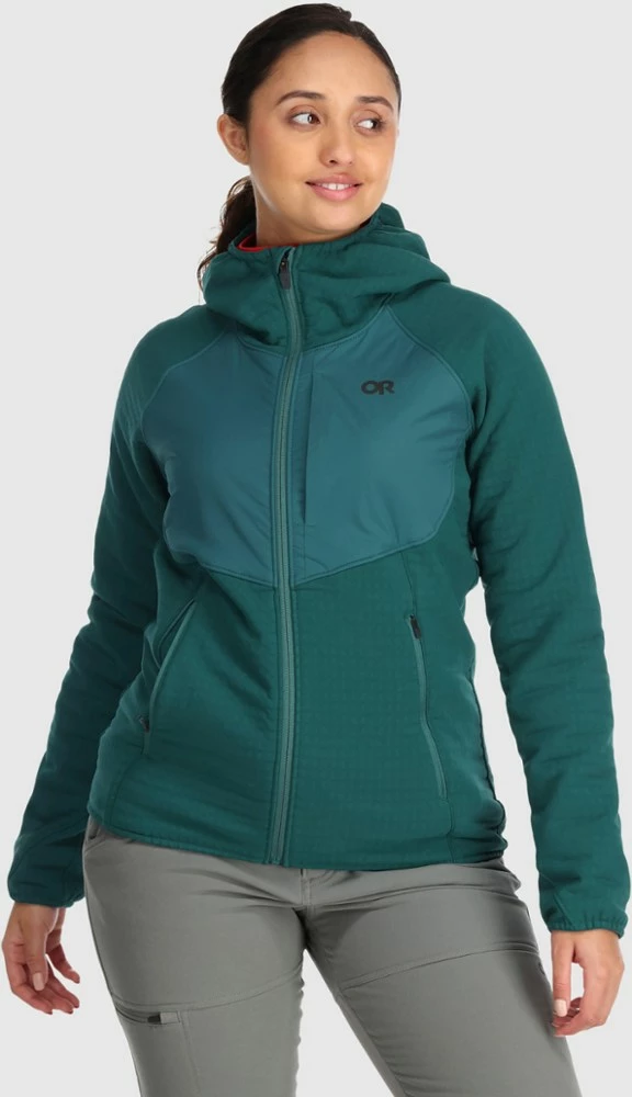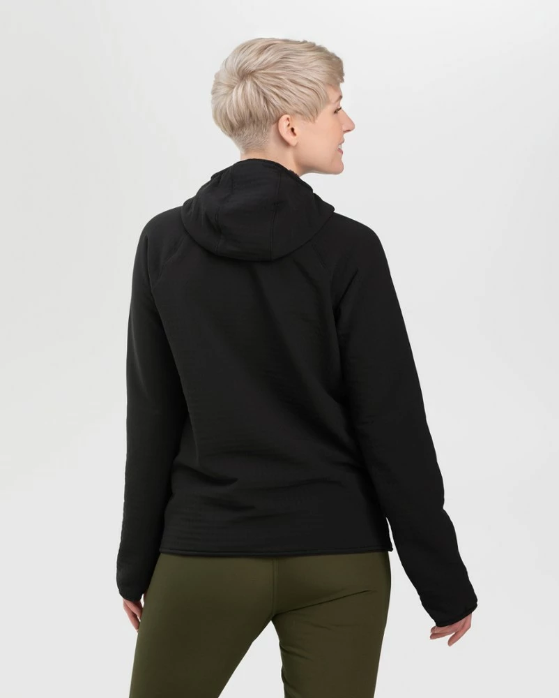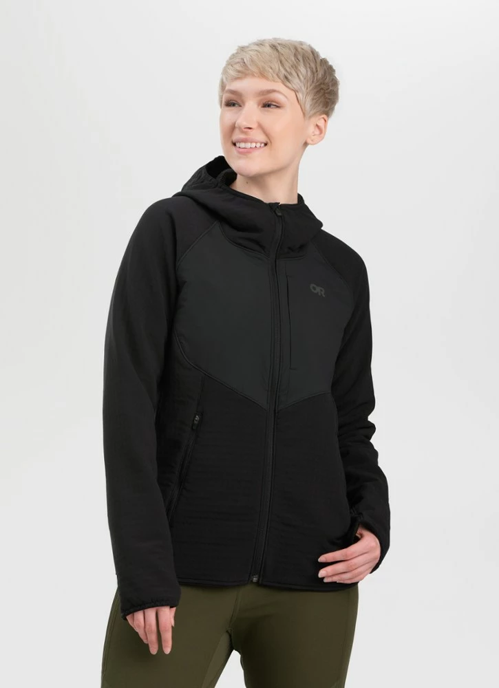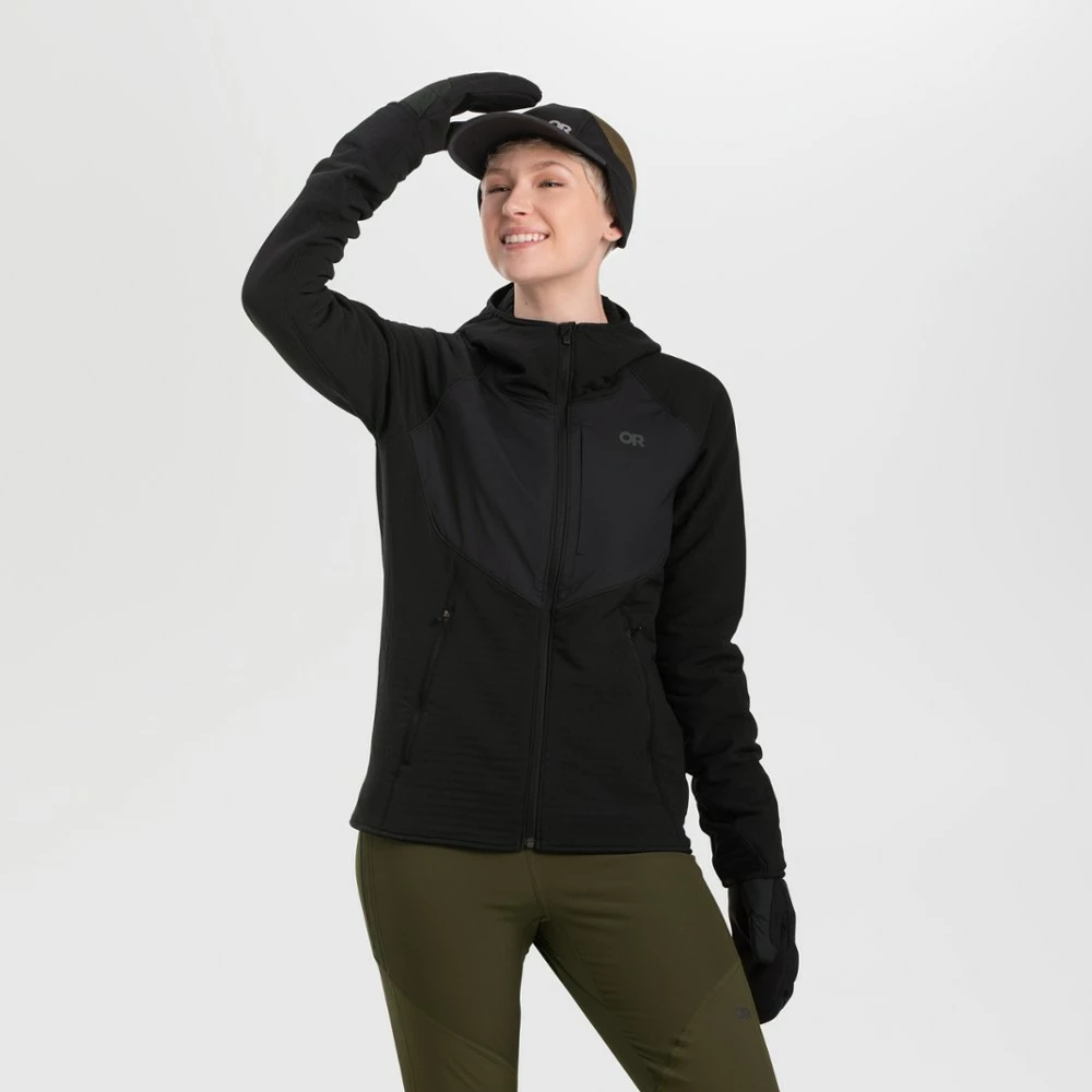 An ideal mid layer for backcountry touring and any other high-exertion cold-weather activities, the women’s Outdoor Research Vigor Plus fleece hoodie is engineered for simplicity and function.
