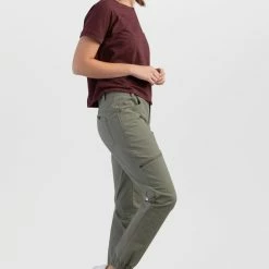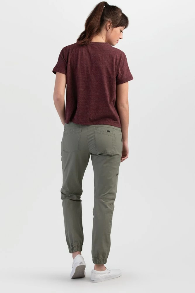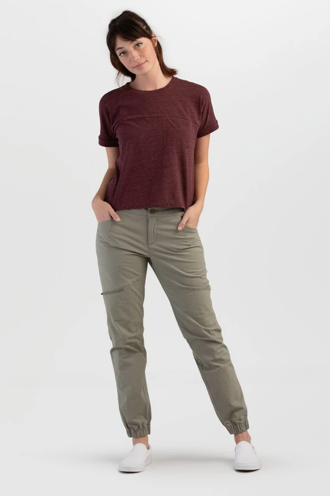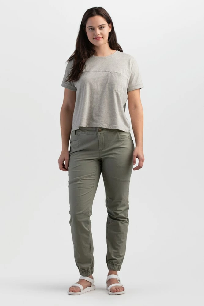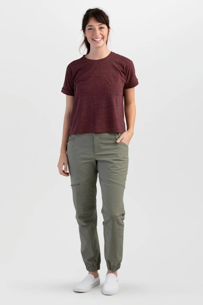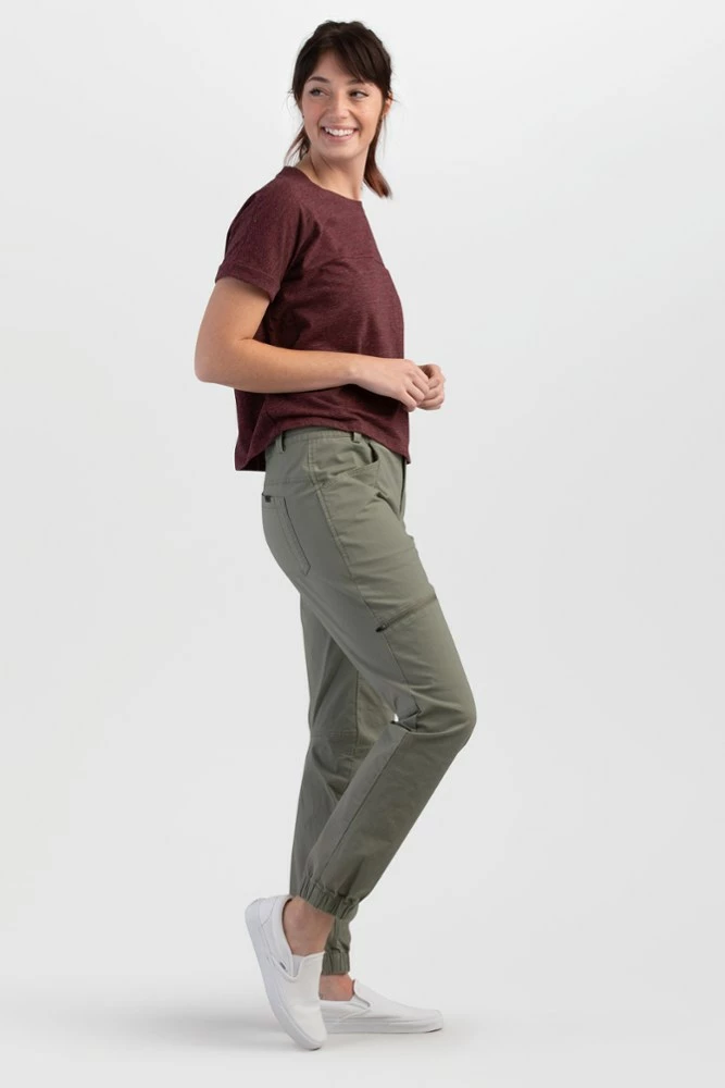 Embodying a durable cotton and CORDURA® nylon blend fabric, the Outdoor Research Wadi Rum stretch joggers were built with her rock climbing needs in mind, but they also work well for everyday wear.