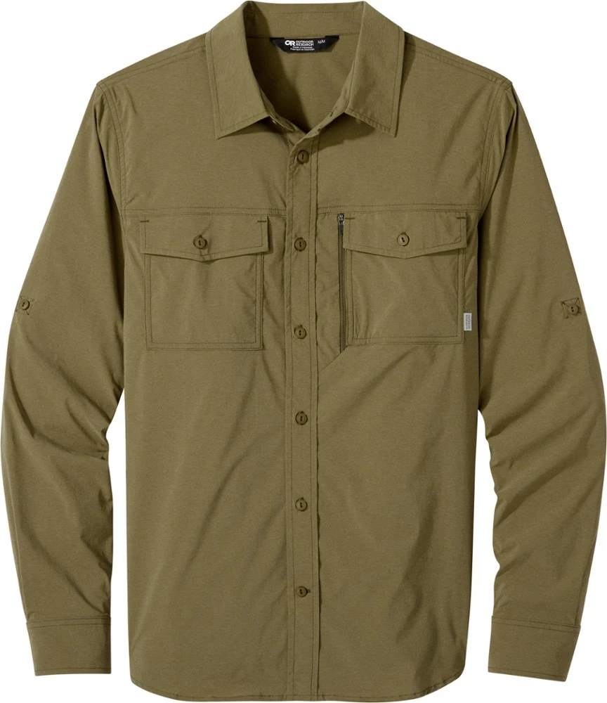 A performance shirt that’s made from a durable, technical nylon fabric blend, the men’s Outdoor Research Way Station long-sleeve shirt feels cool to the touch when you’re traveling in warm climates.